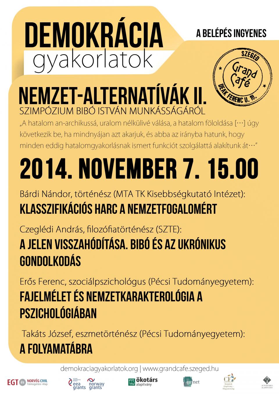 Topics were: Does it worth to deal with political philosophy in Hungary and what is it's stake, nation as a political community in the interpretation of Bibó, are there any meaningful political debates, what is good politics and who is a good politician? The oeuvre of Bibó was discussed in connection with various paradigms of philosophical and political history, for example with paradigms of Walter Benjamin, Michel Foucault and Norbert Elias but current political narratives were analysed as well (like the speeches at Kötcse or Tusnád).