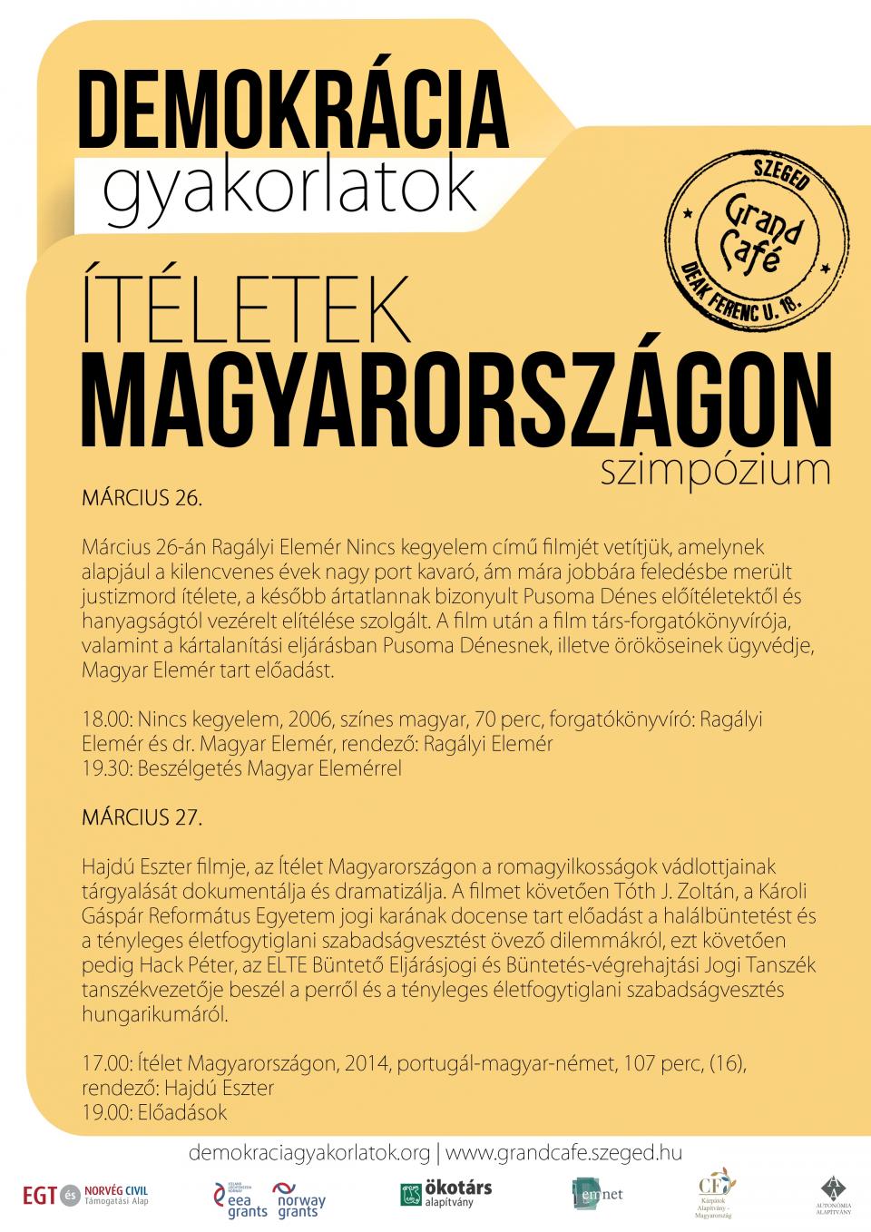 The goal of the project is to increase the social-political awareness of young people studying at high schools and at the University of Szeged. Through thee workshops, symposiums, film screenings, conversations anyone can join the project who is interested in these matters. A more indirect goal is to stimulate civil political activity and the practice of participatory democracy in Szeged. Besides theoretical courses the organizers plan workshops of “democracy-practices”, interactive events, thematic film clubs, creative courses of photography and filming.